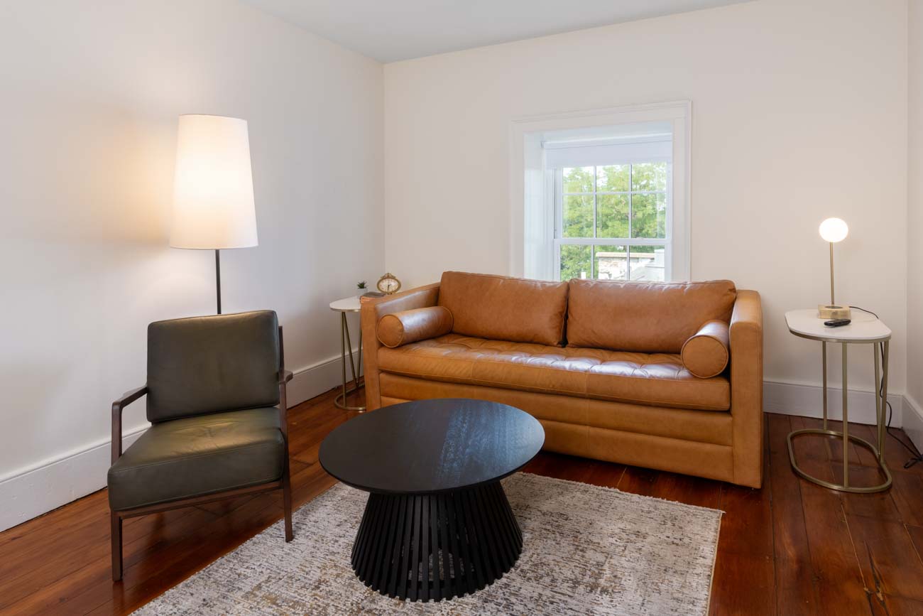 The Barton Suite is located within this historic landmark, originally built in 1824 by the Barton family alongside Joshua Fairbanks. This studio-style room features one queen bed, a kitchen area, and a private bathroom, offering a cozy and convenient retreat
